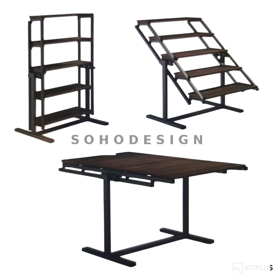Стол-стеллаж В2473 - многофункциональный обеденный стол, с поворотнуой функцией. Благодаря данному механизму стол можно использовать в качестве обеденного стола или в качестве стеллажа с полками, освобождая пространство.