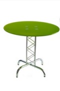 Стол обеденный круглый В2019 китайской фабрики Gomlden сезона 2014г. Представлен в двух возможных вариантах: прозрачное стекло за 12500р. и салатовое стекло по акции за 10500р. Стильные и интересные опоры хромированные. D90*h76см. 23кг.