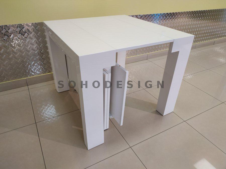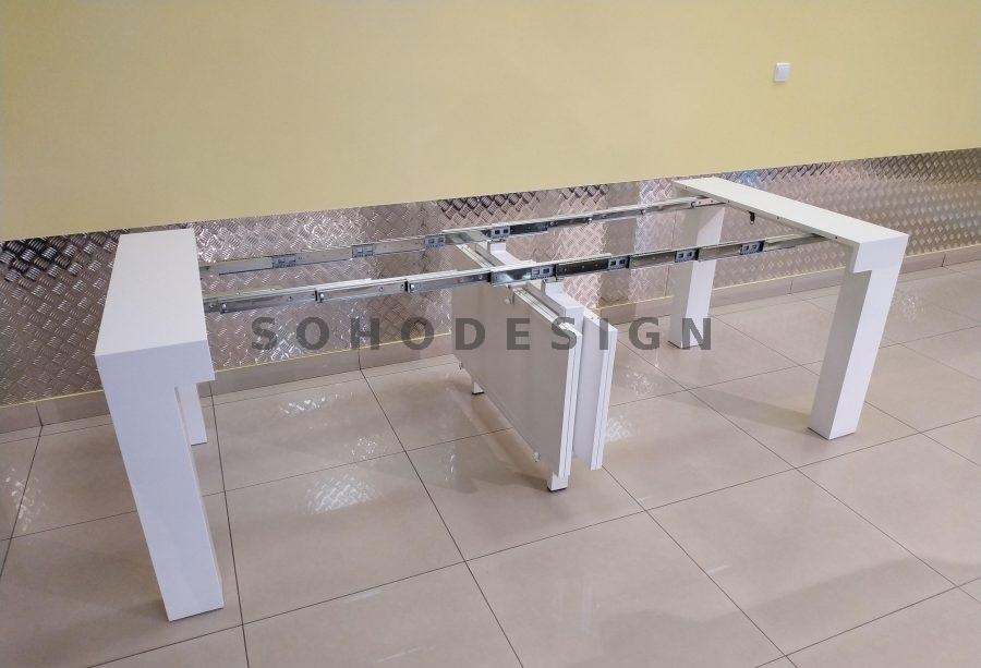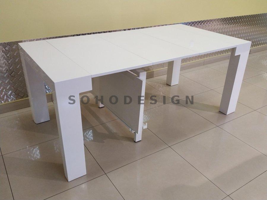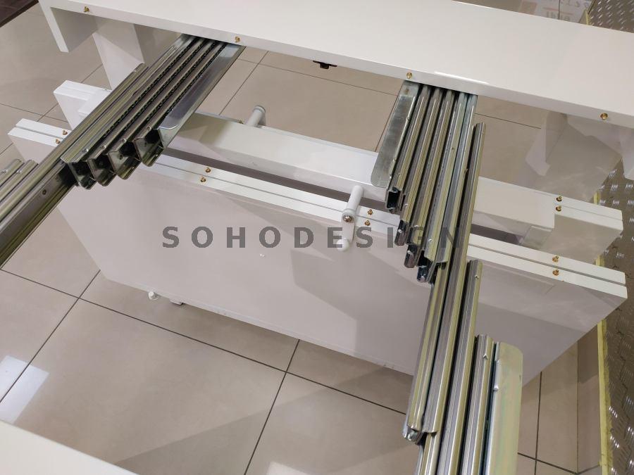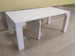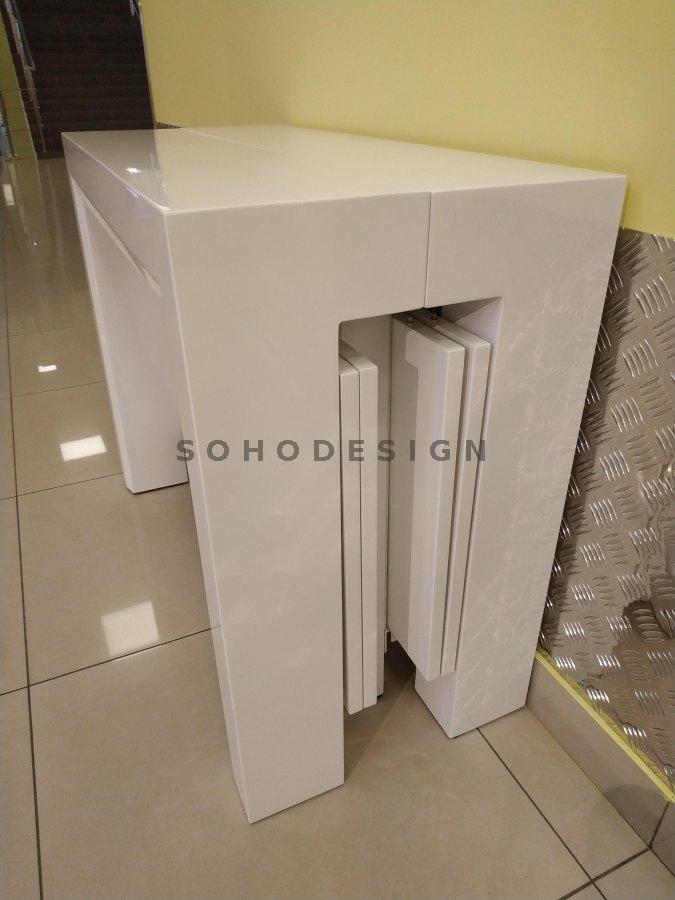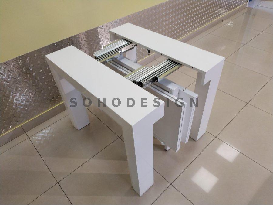 Уникальное товарное предложение, стол-консоль В2307-1 на 10-12 человек. Панели-вставки (4шт.) убираются в среднюю металлическую опору, что позволяет сохранить пространство и не думать об их месте в комнате.