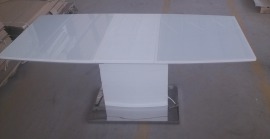 DT15037-2 стол обеденный, новинка сезона 2015г. от китайской фабрики Gomlden. Раскладной механизм "бабочка" с отделкой белый глянец, позволяет увеличить длину столешницы с 160см. до 220см. Ширина 80см. Высота 77см. 93кг. Стекло белое.