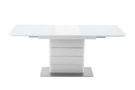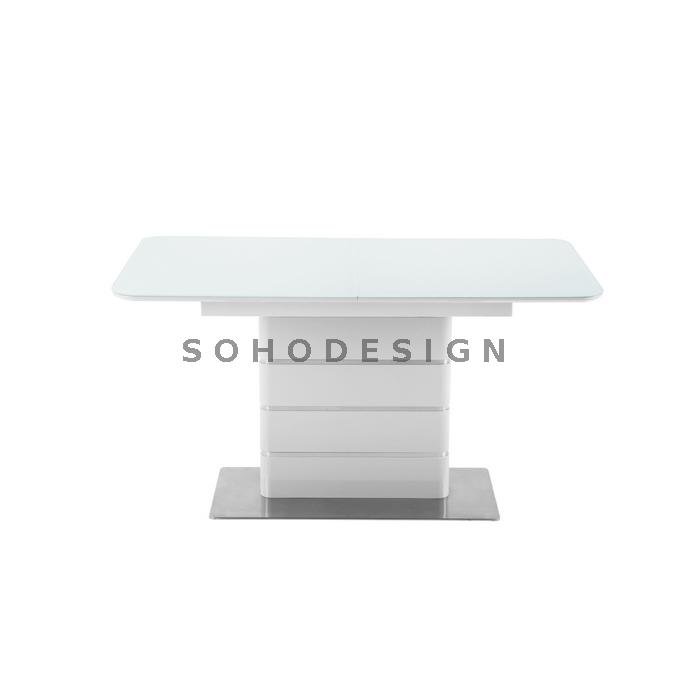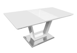 Стол обеденный ОКТ2148, мдф в белом глянце W023, стекло белоснежное "Сатин". Механизм трансформации - удобная "бабочка".